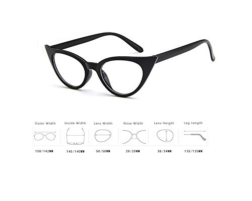 Specification: 2020 schwarze Damen-Brille mit klaren Gläsern, Nerd-Brille im Retro-Stil, Katzenaugen-Stil, VTG 50er/60er Jahre