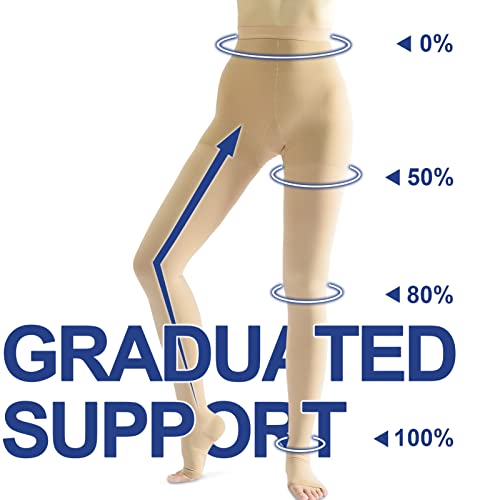 beister Medizinische Kompressionsstrümpfe Damen Lang, 20-30 mmHg Stützstrümpfe Herren, Undurchsichtig Offene Zehe Kompressionshose klasse 2 Solide Unterstützung für Krampfadern,Ödeme