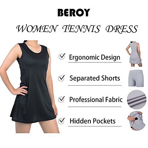 beroy Tennis-Golfkleid für Damen mit Shorts, ärmellos und 4 Taschen, Trainingskleidung – Schwarz – Klein