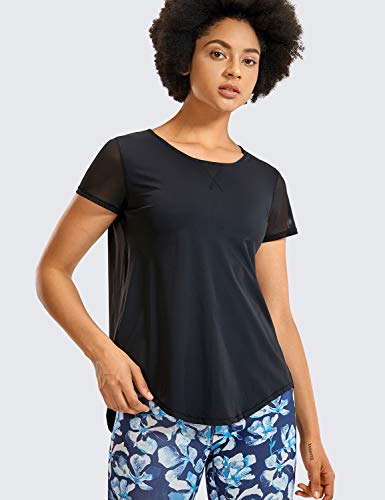 CRZ YOGA Dames Yoga Workout Mesh Shirts Activewear Sexy Open Back Sport Shirt Tops