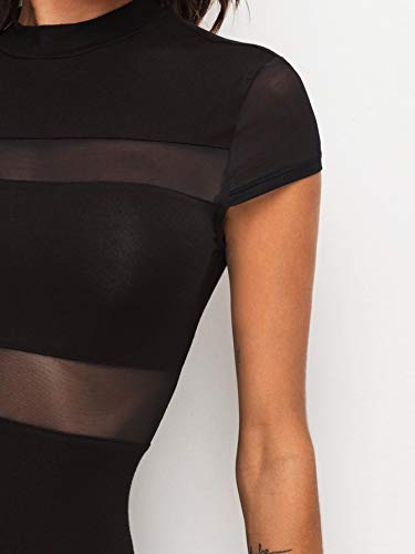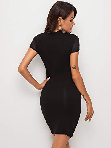 Specification: DIDK Damesjurk, bodycon, korte jurk, mini-jurk, vrijetijdsjurk, feestjurk, figuurbenadrukkende korte jurk met mesh-inzetstuk