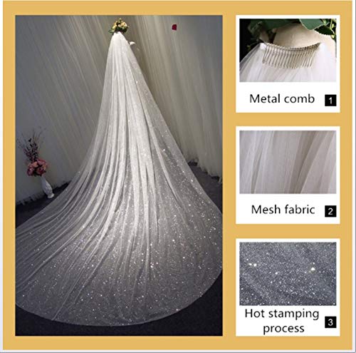 Specification: DXYAN Bruidssluier 3M/3.5M/4M/4.5M/5M Lace Edge Sequins Appliques Kapel sluier bruiloft accessoires bruidssluier (wit)