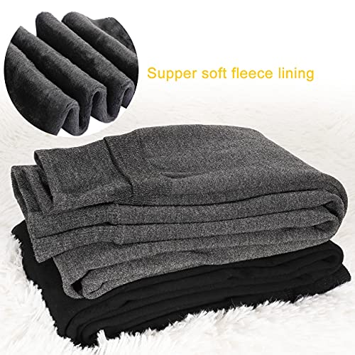 Emooqi Lange dameslegging, set van 2 stuks, hoge taille, ondoorzichtige leggings met buikcontrole, winter, warme thermoleggings, rekbare broek met fleecevoering, 2 stuks, zwart/marine/grijs, eenheidsmaat