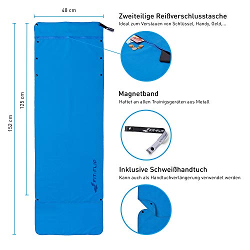 Fit-Flip Fitnesshanddoek met ritssluiting, gepatenteerd, driedelig, 5 verschillende instelbare lengtes, capuchonfunctie, opbergvak, magneetstrip, extra sporthandoek, microvezel, meerdere kleuren