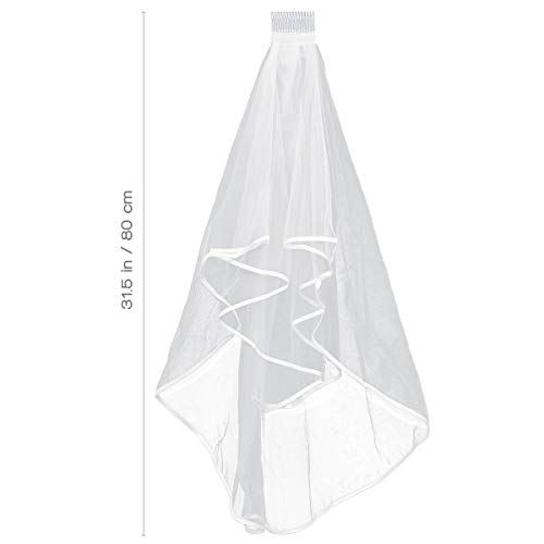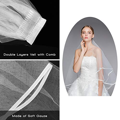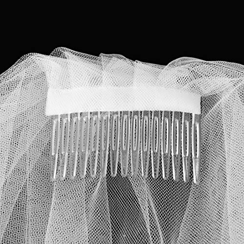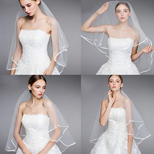 Frcolor Bruidssluier, Elegent Bridal tule met kam sluier Ribbon Edge (wit)