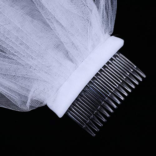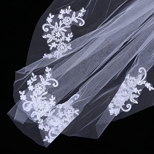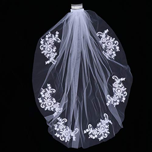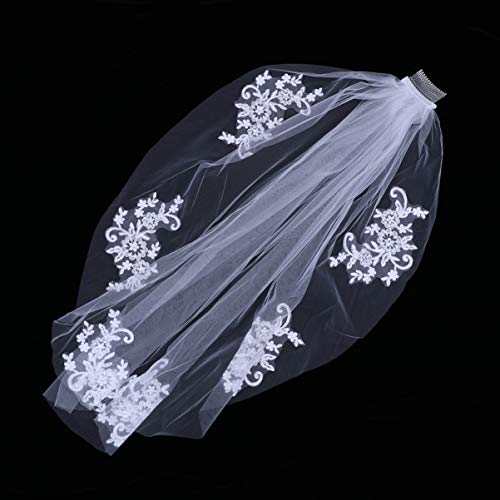 Specification: FRCOLOR Bruiloft bruid sluier witte sluier kam hoofdband enkele korte bruid strass sluier wit kant appliques parels hoofd sluier