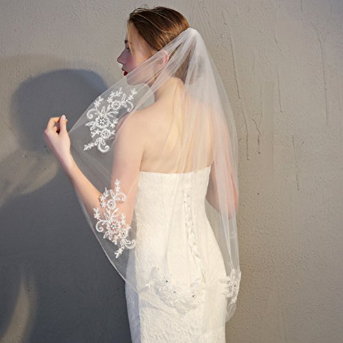 Specification: Frcolor Vrouwen bruiloft sluier kant bruiloft bruidssluier met kam