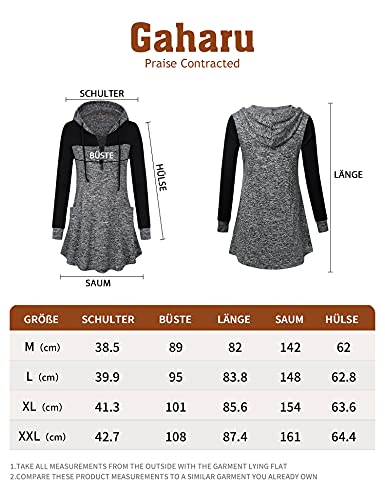 Specification: Gaharu Damestrui met lange mouwen en V-hals, elegante A-lijn capuchontrui, pullover, bovenstuk met zakken