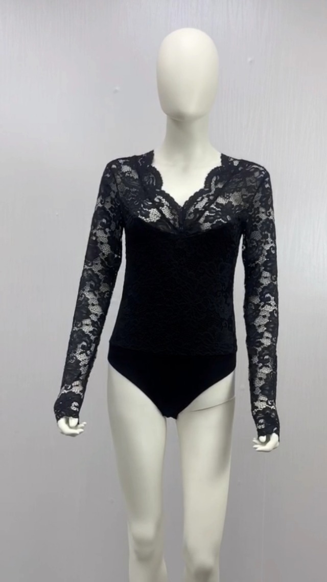 Specification: Germinate Kanten V-hals body dames lange mouwen sexy elegant zwart vorm kant body bodysuit dames body bovenstuk