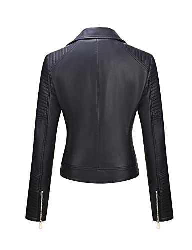Giolshon Korte damesjas van kunstleer, motorjas.