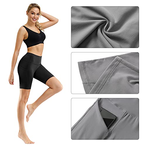 HMIYA Korte sportbroek voor dames, yogashorts, sportlegging, korte yogabroek, fitness, workout tights hoge taille met zakken