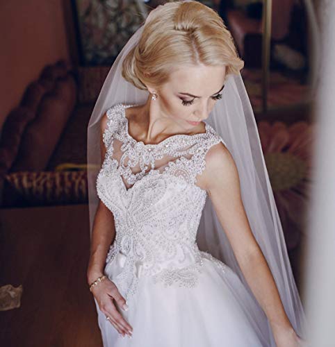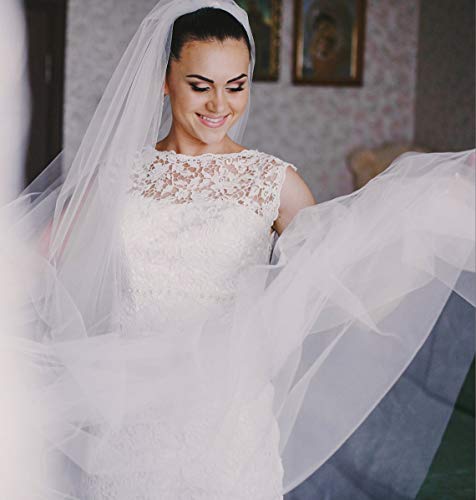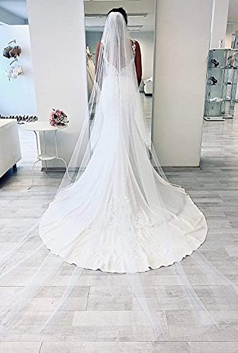 Hochzeits-Braut Schleier länger Kathedrale-Kapelle 1 Ebene Brautschleier weicher Tüll Bodenschleier Kathedrale mit Kamm Hochzeitszubehör schleier 274 cm Elfenbein