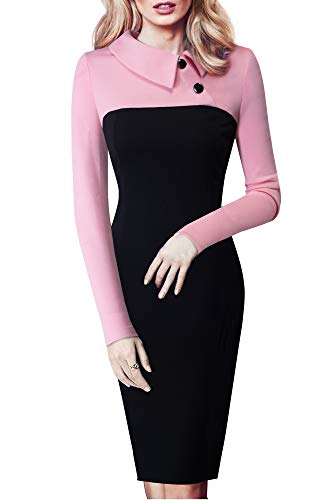 Homeyee damesjurk, vintage, lange mouwen, elegante jurk, kantoor, party, cocktailjurk, knielange avondjurk, B238