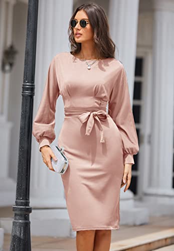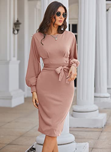 💓 Stil: Das Bleistiftkleid ist wirklich schön und feminin. Wenn Sie ein wenig konservative Art von Person sind, dann funktioniert dieses Kleid immer für Sie. Die Länge der Arbeitskleider ist genug, nicht zu kurz oder zu lang. Figurbetontes Bleistiftkleid mit Gürtel, unterstreicht Ihre Taille, lässt Sie größer aussehen und Ihr Größenverhältnis perfektionieren
