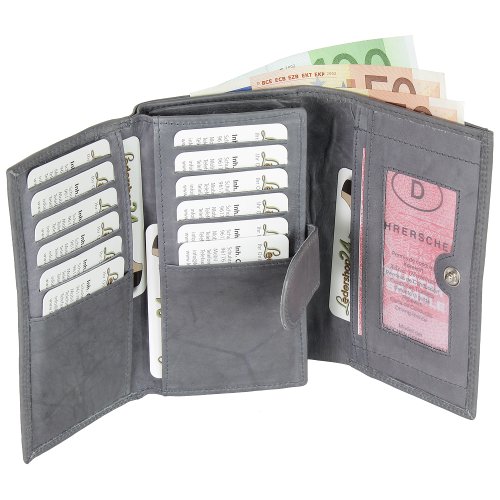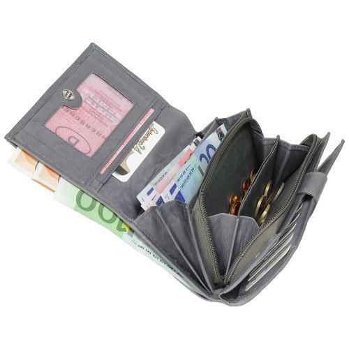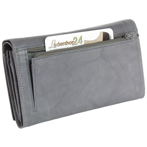 Specification: Ledershop24 portemonnee voor dames, leder, keuze uit verschillende kleuren, cadeauset met exclusieve sleutelhanger, grijs