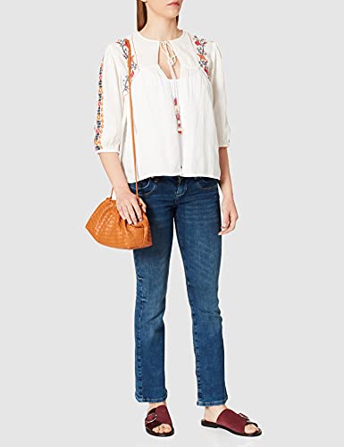 Siernaden en geborduurde details op de broekzakken creëren de typische denim-look.