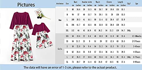 Specification: Moeder en dochter maxi-jurk casual bloemenstiksel plus size maxi-jurk lange mouwen kleding feestjurk maat 2 jaar XXL