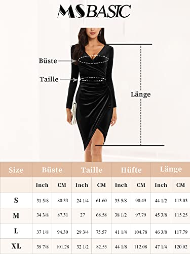 Specification: MSBASIC Avondjurk met lange mouwen, winterjurk, dames, kerstjurk, fluwelen jurk, oudejaarsjurk, wikkeljurk voor bruiloftsgasten, knielang, herfst en winter