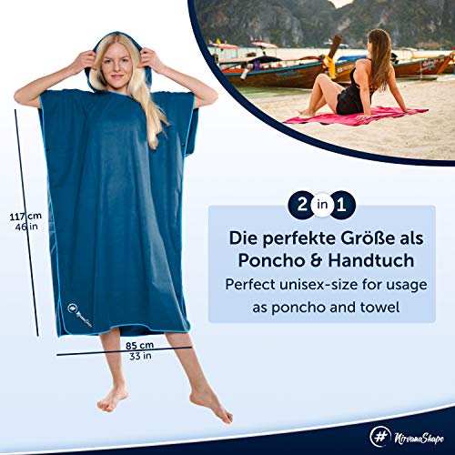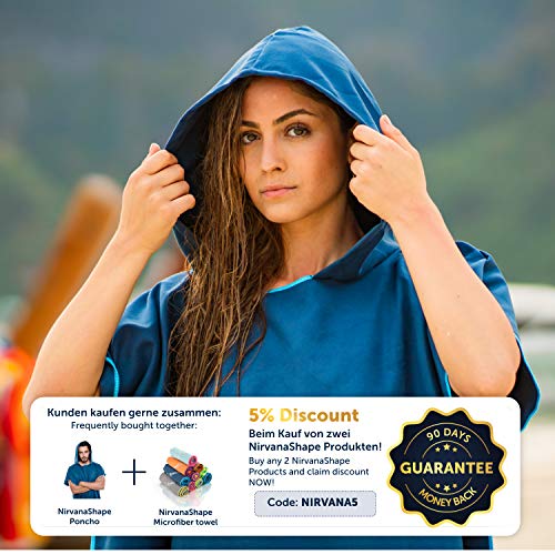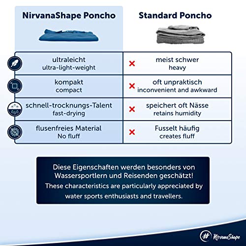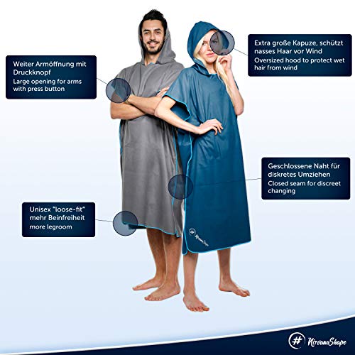 Specification: NirvanaShape ® Handdoek-poncho voor volwassenen, verhuishulp en handdoek tegelijkertijd, surf-poncho met Quick-Dry-functie, ideaal voor op reis voor surfen, kamperen, sauna, snorkelen, strand