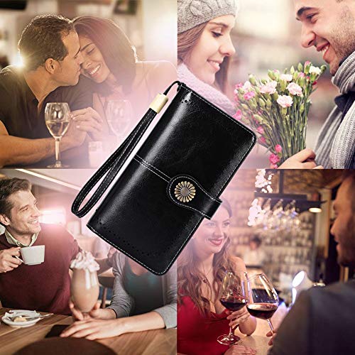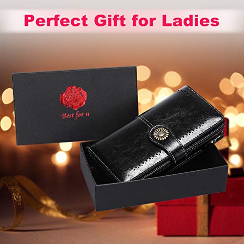 Portemonnee voor dames, leer, grote portemonnee voor dames, groot veel vakken met 24 kaartvakken, lange portemonnee voor vrouwen, RFID-bescherming, lederen portemonnee met vak voor mobiele telefoon en ritssluiting, zwart, groß,