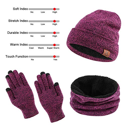 Specification: TAGVO Winterbeanie muts, sjaal, touchscreen-handschoenen, 3-in-1 warme accessoirekit, zachte fleece binnenvoering, geweldig warm, stretchy gebreide beanie-cap, elastische nekwarmer