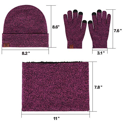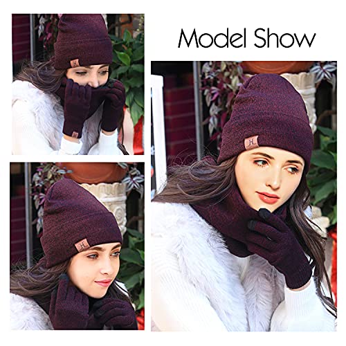 TAGVO Winterbeanie muts, sjaal, touchscreen-handschoenen, 3-in-1 warme accessoirekit, zachte fleece binnenvoering, geweldig warm, stretchy gebreide beanie-cap, elastische nekwarmer