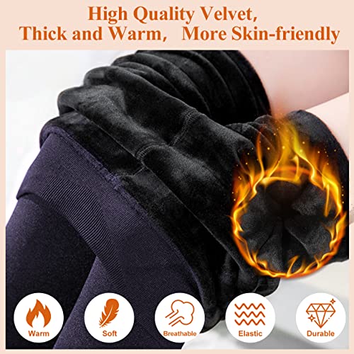 Tencoz Thermische leggings voor dames, verpakking van 2 stuks, hoge taille, ondoorzichtige leggings, lange leggings met dikke fleecevoering, winter, warme leggings, rekbare panty