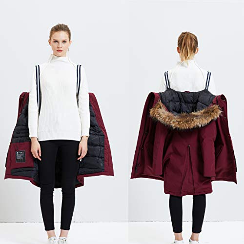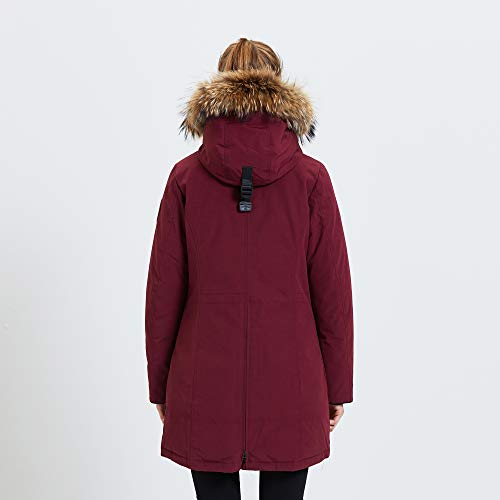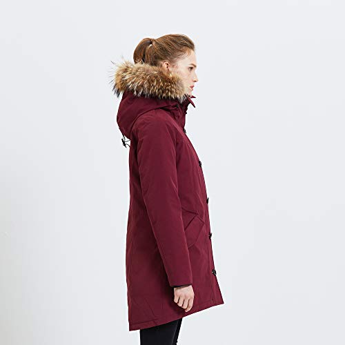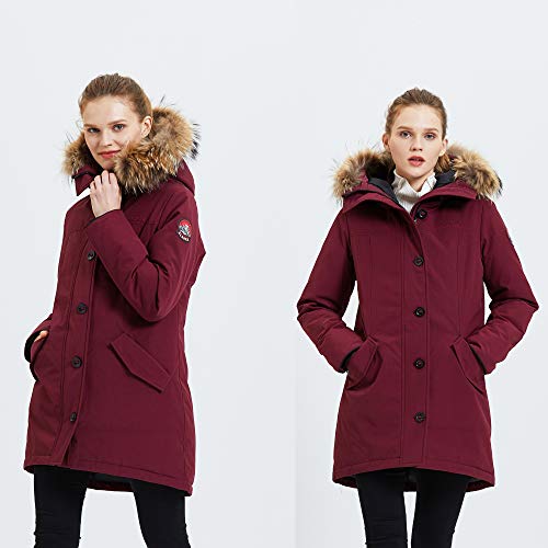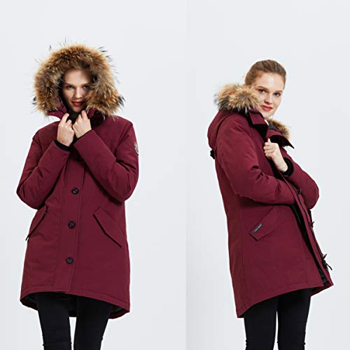 TIGER FORCE Winterparka voor dames, warm, verdikt snowjack met afneembare capuchon van echt wasberenbont, waterdichte winddichte regennevel voor buiten, gevoerde, gevoerde jas voor buiten. wijnrood/marineblauw.
