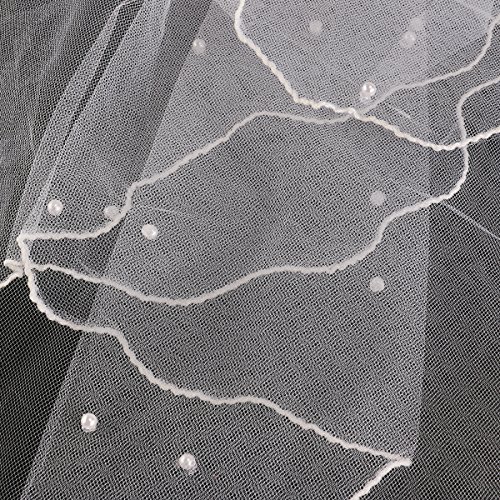 Tinksky Bruidssluier, 80 cm, met kam, dubbellaags, met parels, wit