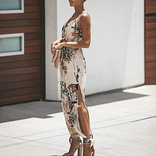 Stil: Sexy; V ausschnitt; Lang; Spaghettiträger; Blumenmuster; ärmellos; Split; Hohe taille; Mit taschen; 100% Baumwolle; Elegant; Damen Jumpsuit.