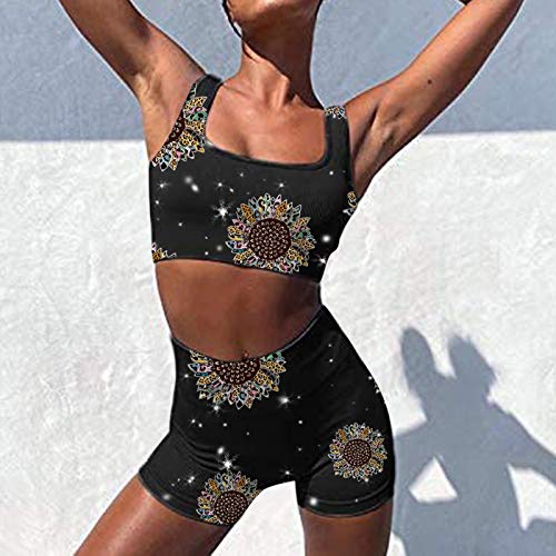 Specification: UoBfine Damen Sportanzug Trainingsanzug Sommer 2 Stücke Set Ribbed Stretch Fitness Yoga Bauchfrei Ärmellos Crop Top+ Sport Shorts Set Outfit Sportswear Sportkleidung Fitnessanzug