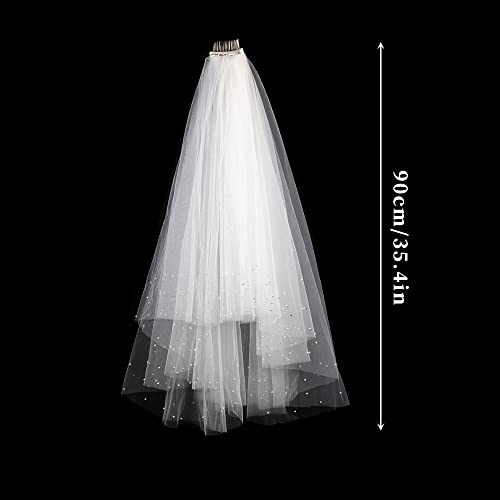 Specification: XiXiRan Bruidssluier, bruidssluier, bruiloftssluier, met kam, bruidssluier, sluier bruidssluier, bruidssluier met parels, 2 lagen lang