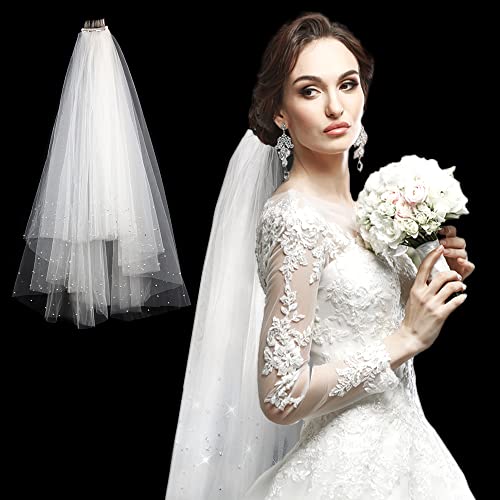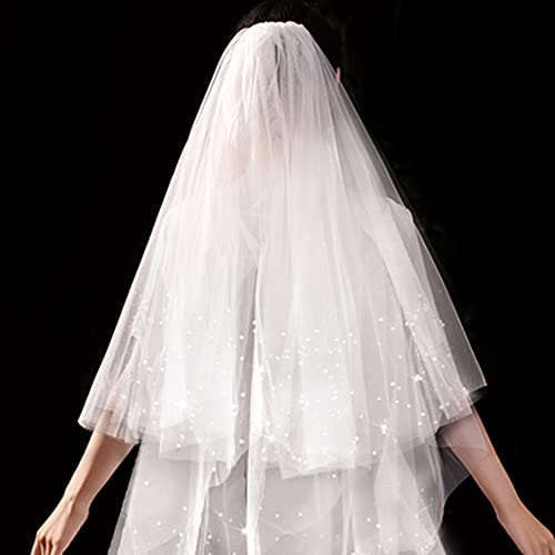 XiXiRan Bruidssluier, bruidssluier, bruiloftssluier, met kam, bruidssluier, sluier bruidssluier, bruidssluier met parels, 2 lagen lang