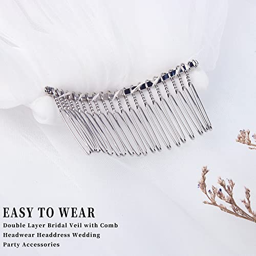 3. [Praktisch design] De elegante witte bruiloftssluier heeft 2 lagen. Stijlvol en eenvoudig ontwerp met een goed pluizig gevoel. De kam is gemaakt van metaal en kan goed aan het haar worden bevestigd.