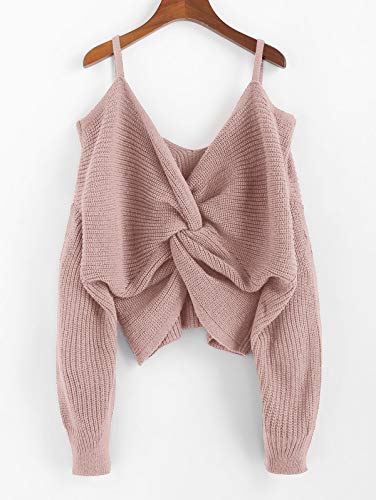 Specification: ZAFUL Sexy gebreide trui voor dames, zonder schouders, geknoopt, losse gebreide trui, tumblr sling top, korte trui